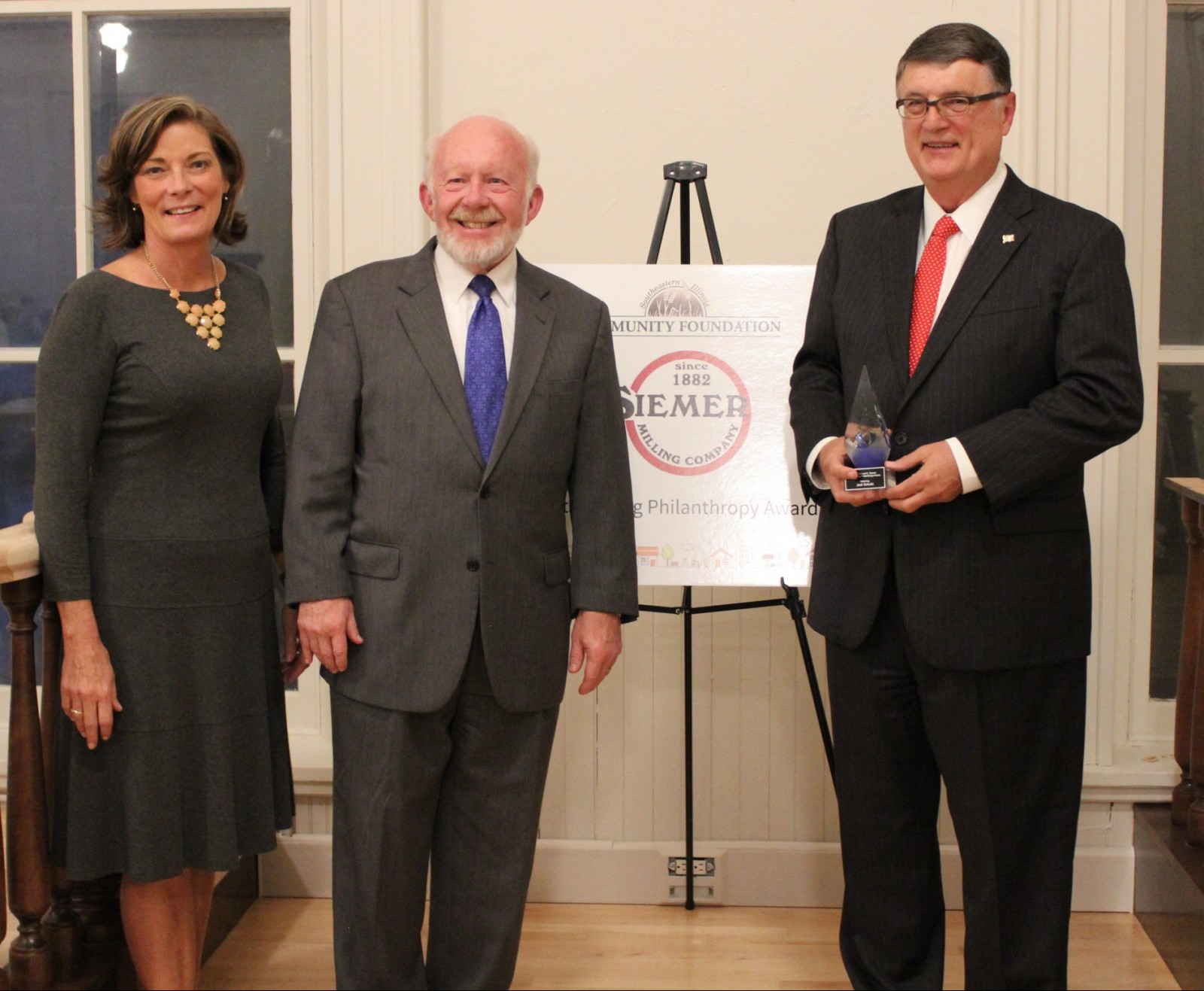 Pictured L-R Community Foundation President/CEO Joedy Hightower, Rick President/CEO of Siemer Milling, and former award recipient Rick Siemer, and Outstanding Philanthropy Award recipient Jack Schultz.