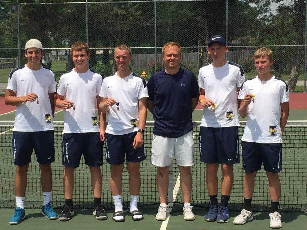 Over the weekend Teutopolis Boys Tennis team competed at Sectionals. Teutopolis as a team finished second to Olney by one point, however they are sending 5 players to State. Kylele Mossman finished first in single, Alex and Seth Probst finished third in doubles, and Logan Waldhoff and Alex Deters finished fourth in double. All 5 will be going to the State tournament this Thursday thru Saturday in Chicago.