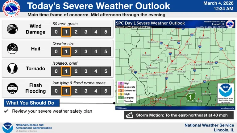 Effingham, IL-(Effingham Radio)- Rainy conditions will continue throughout the week, with severe weather likely this afternoon. Additional rounds of showers and storms are expected across portions of ...