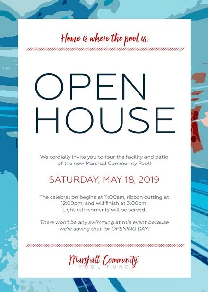 Please join us at the open house for this historic moment in Marshall at the Marshall Community Pool.