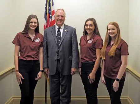 Clay Electric Student Delegates. Pictured from left – Sydney Rudolphi, Congressman John Shimkus, Malorie Craig and Shelby Cailteux.