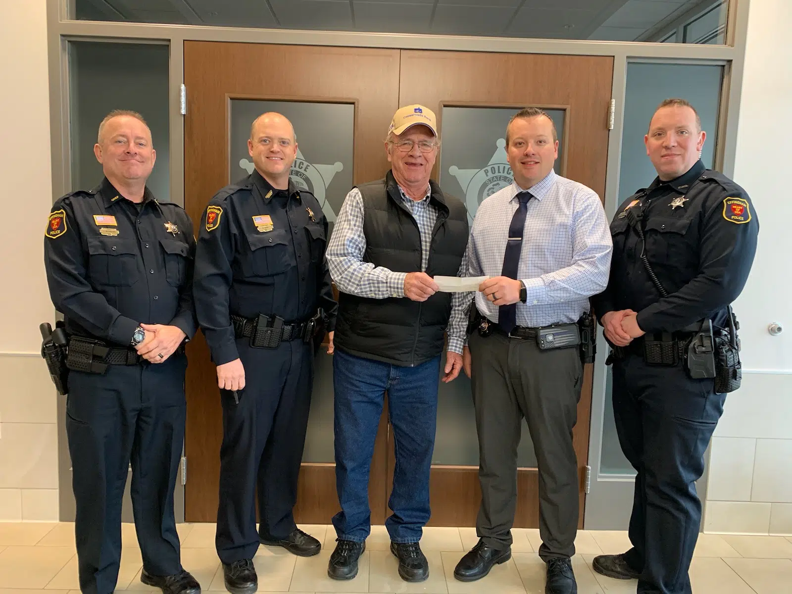 Effingham, IL -(Effingham Radio)- Pictured, left to right: City of Effingham Chief of Police Jason McFarland, Deputy Chief Kurt Davis, Jerry Moon, Lieutenant Tom Webb and Officer Jeremy Kyle.