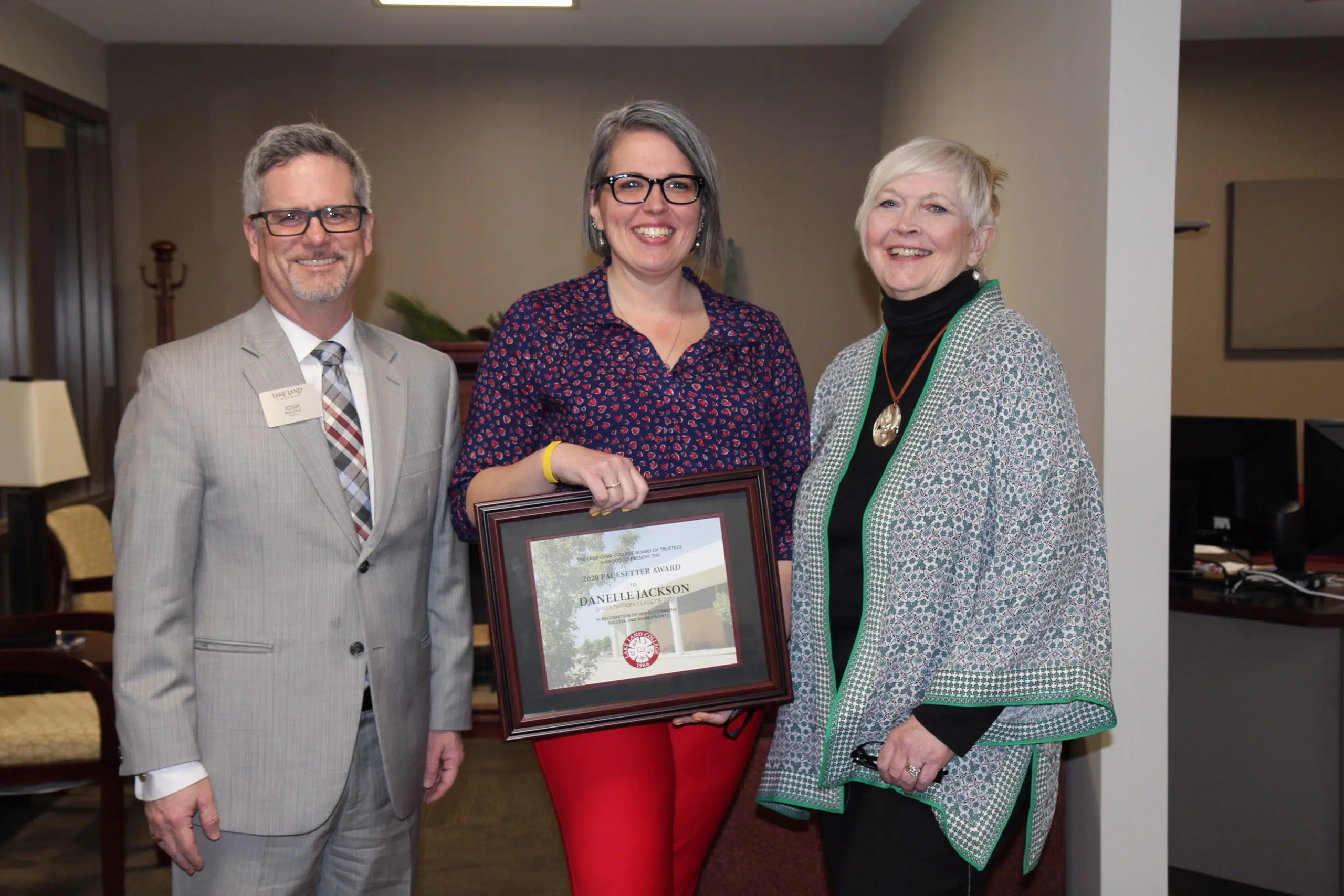 Mattoon, IL -(Effingham Radio)- The Lake Land College Board of Trustees presented the 2020 Pacesetter Award to Danelle Jackson, Laker Nation Class of 2007, at the March board meeting.