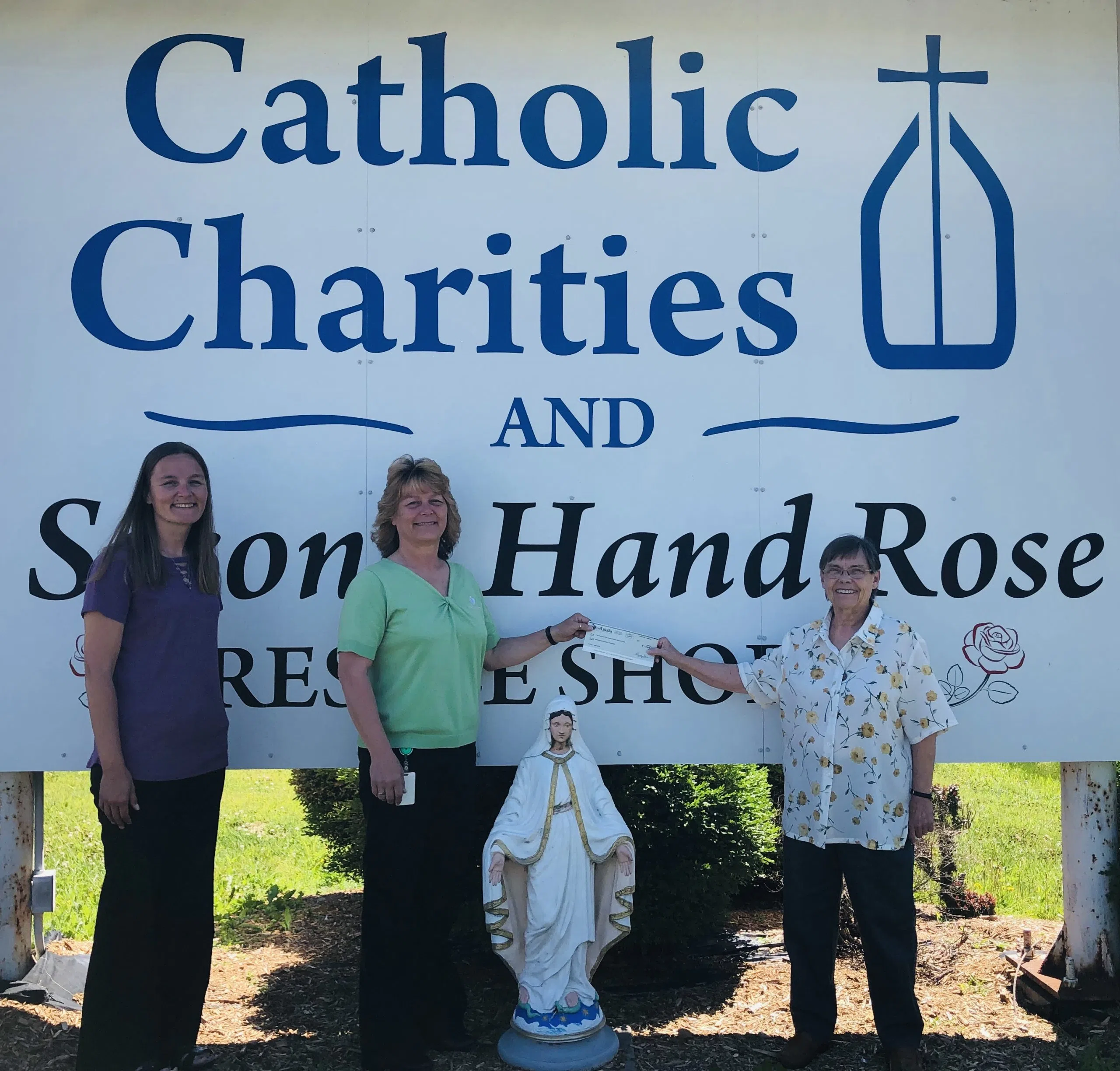 Effingham, IL -(Effingham Radio)- Pictured L-R: Elizabeth Wilson, Loan Officer at the Land of Lincoln; Vicki Yocum, Branch Manager at the Land of Lincoln; Sr. Carol Beckermann, Area Director at Catholic Charities