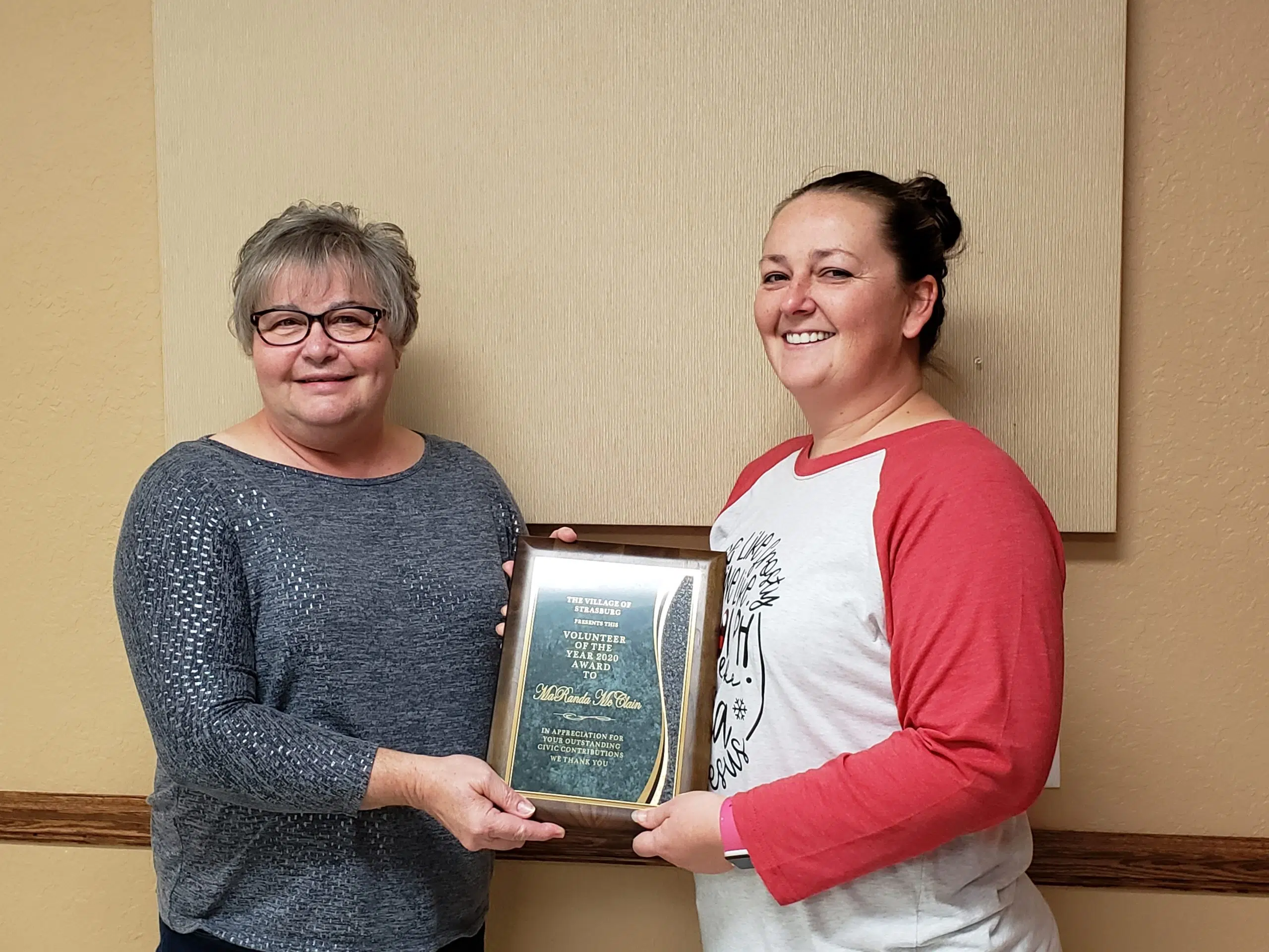 Pictured –Strasburg Village President Cinda Held and MaRanda McClain