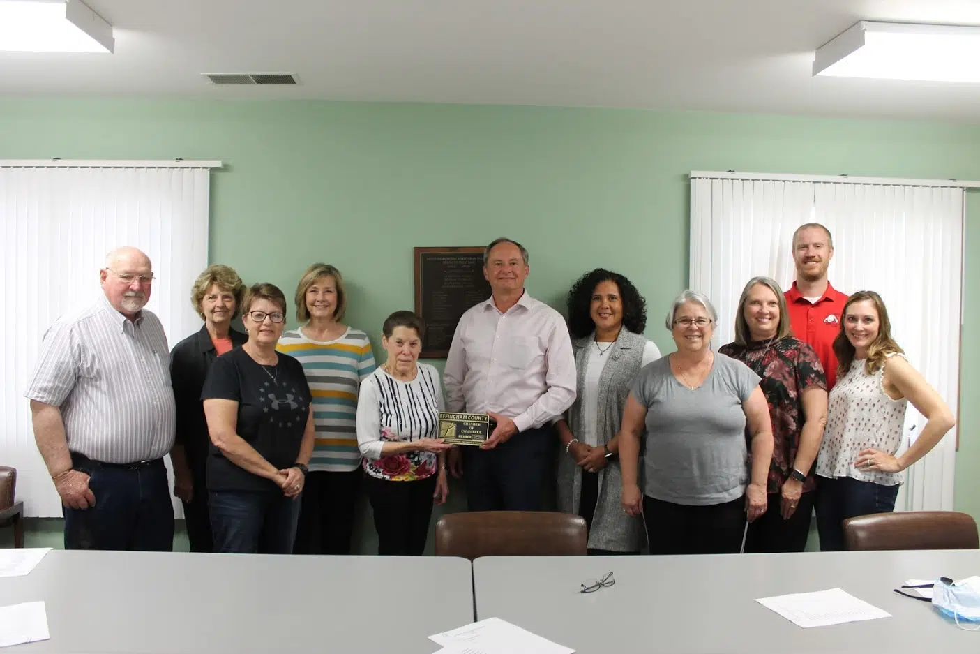 Shown in the photo are (L-R): Ray Long; Sharon Bludworth; Sandy Croft; Theresa Harner; Susan Elke, President; Mel Stock, Midland States Bank; Lucinda Hart, Chamber President & CEO; Karen Luchtefeld; Debbie Womack, Chamber Ambassador; Mike Meers, Treasurer and Racheal Fearday.