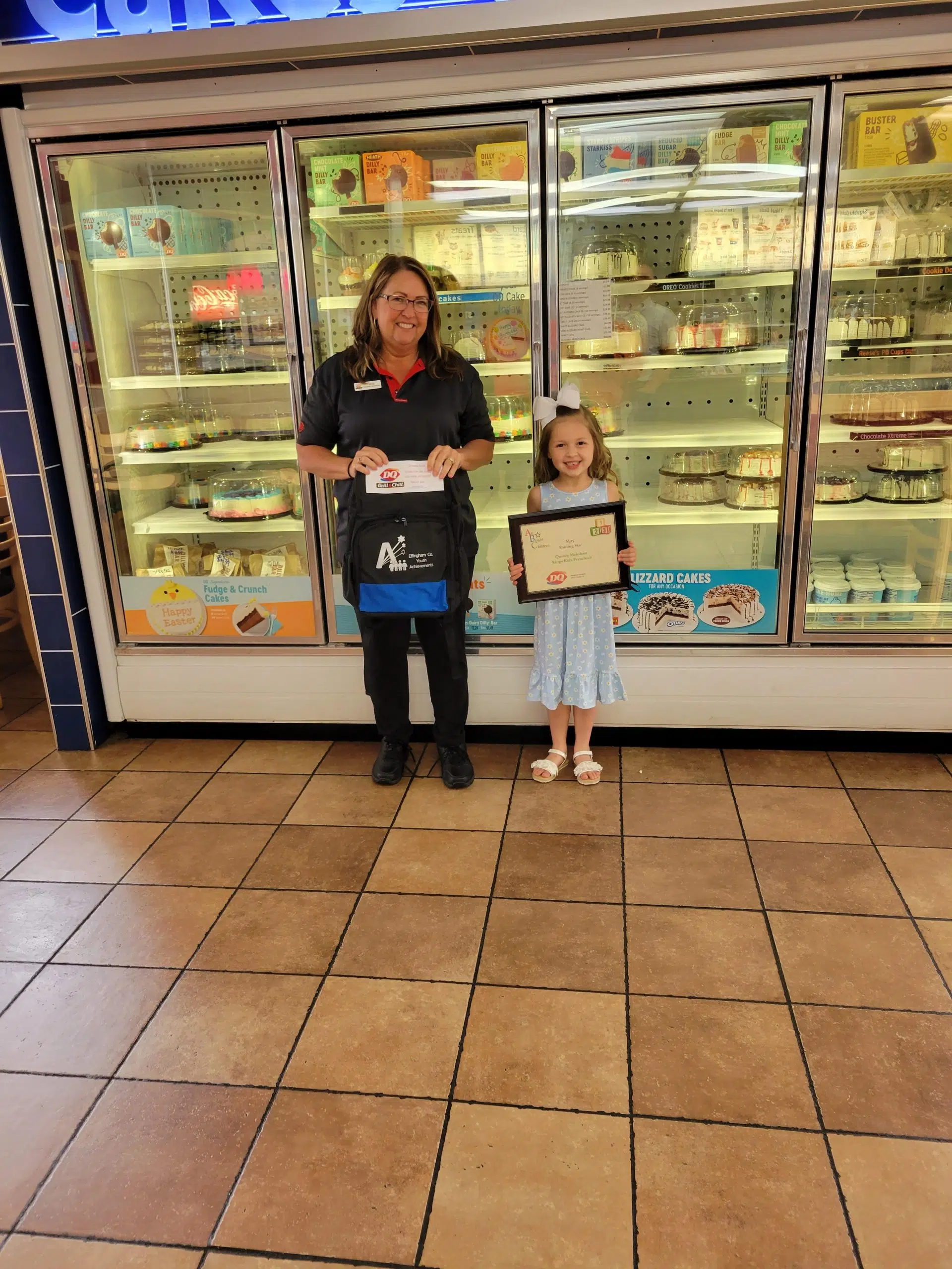 DQ believes that our children need to be encouraged for their good efforts. Quincy was selected by her school staff based on preset standards. She is pictured with Jeri Bland, manager of the Effingham Dairy Queen, after receiving her monthly plaque and certificate for a free Dairy Queen meal. Quincy enjoys everything about school and wants to be a teacher & mom in the future. Thanks to Kings Kids School & her parents for their strong support and direction.