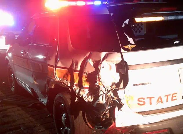 The Trooper was standing outside of the vehicle assisting another Trooper with enforcement duties, when the Trooper’s squad car was sideswiped.