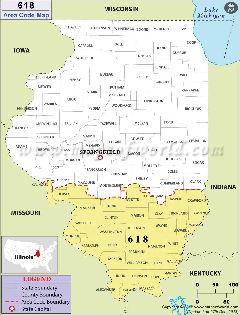 Light says when you dial the 730 area code, it will still be considered a local call in the 618 region. 618 is used in all or parts of 37 downstate counties, including most of Fayette County, parts of Effingham County and most of Bond County. The 618 area code is one of the original area codes assigned in the United States by Bell Laboratories in 1947.