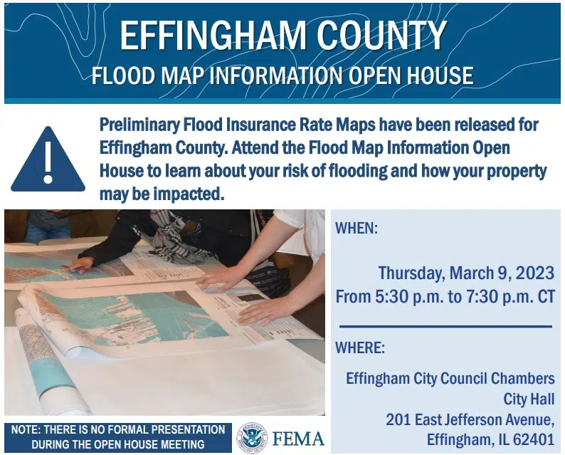 Effingham, IL-(Effingham Radio)- The Effingham County Flood Map Information Open House is set to be held on Thursday, March 9th.