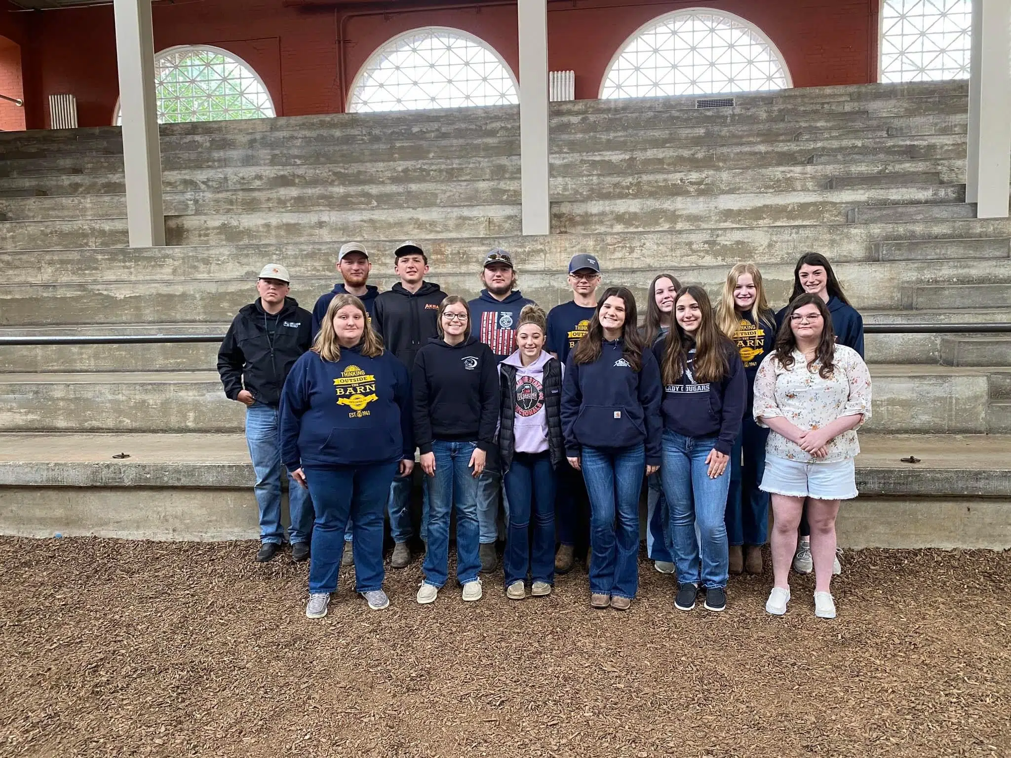 Group Photo: back row (from L to R) Maddox Robb, Drew Hassebrock, Kage Hiestand, Blaze Courson, Wyatt Iler, Miranda Yates, Karli Holmes, and Kinlee Thompson. Front row (from L to R) Morgan Robb, Hailey Shuler, Abi Shuler, Addisyn Sigrist, Micah Kraemer, and Shelby Smithson.