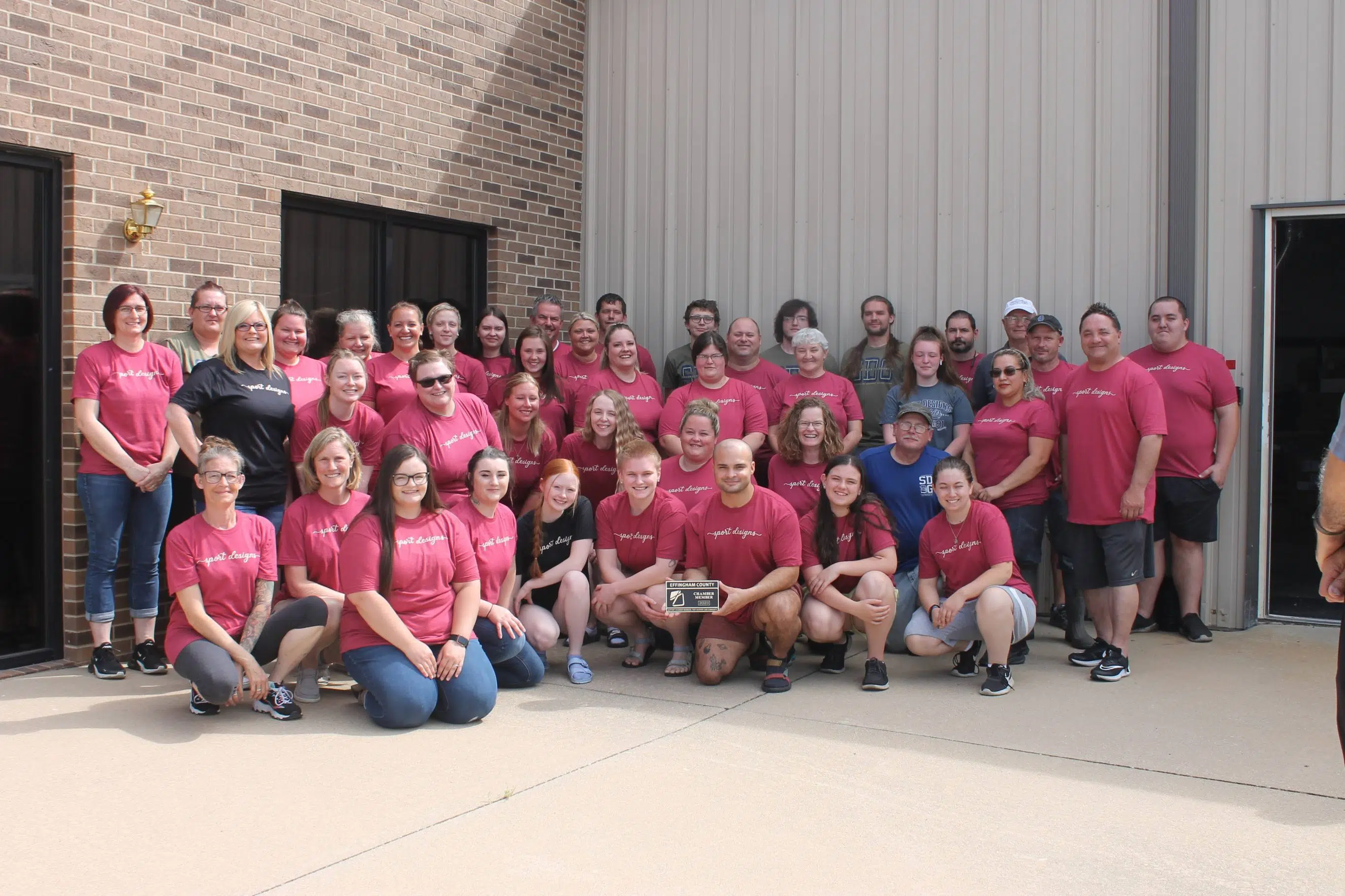 Pictured with President Robert Smothers and Vice Presidents Christi Pruett, Angi McDaniel, Lisa Berra are their talented team members from screen printing, embroidery, receiving, vinyl, art, operations, finishing and sales.