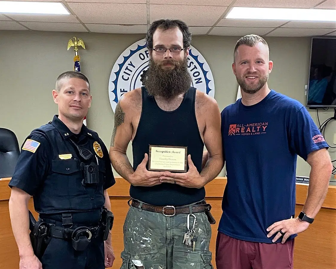 Without Preston’s assistance, the suspect could have eluded police and committed additional acts of violence within the city. Due to his bravery and willingness to help when most wouldn’t. I am recognizing Preston by presenting him with this award.