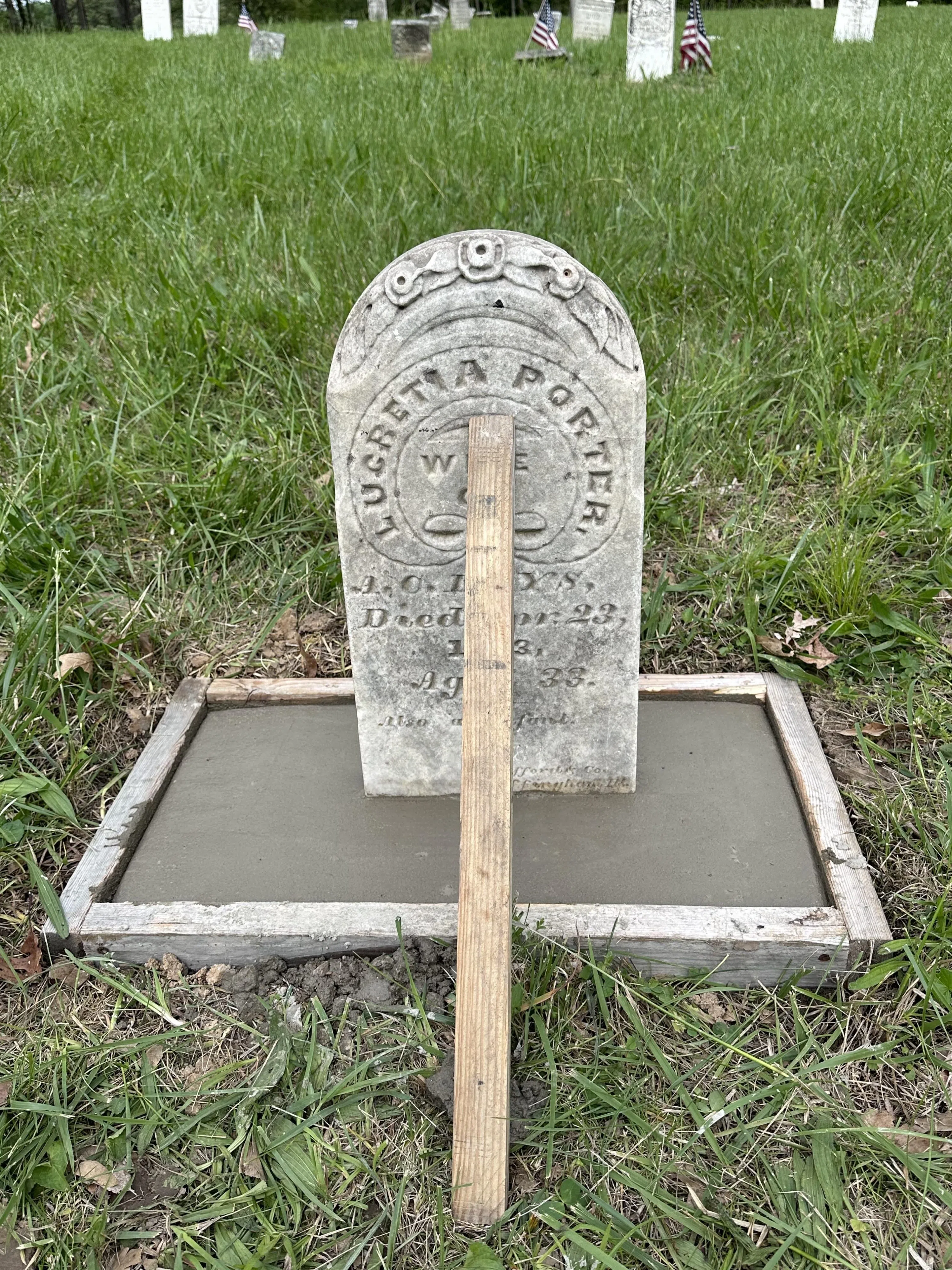 Lucretia Porter, wife of A.C. Keyes, who died April 23, 1873 at age 33, and infant child now have their beautiful stone back to mark their final resting place almost 151 years after their death. RIP Lucretia and infant.
