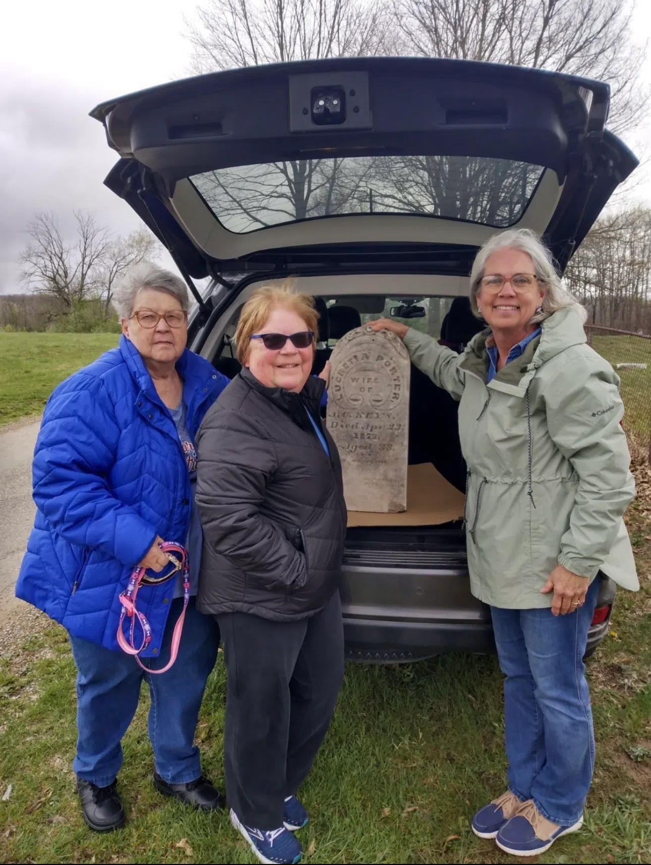 Kathy contacted Deanna, registrar of the DAR chapter nearest to the cemetery hoping to get more information and help to get the stone to its home. Little did she know she would find out that Deanna was very familiar with that cemetery for many reasons. The Ann Crooker St. Clair Chapter’s namesake and Mary Crooker Lloyd, the founding regent, are both buried there. Deanna has family buried there as do many chapter members and Deanna serves on the cemetery board for Ewington Cemetery. They arranged for the stone to be returned to Effingham County.