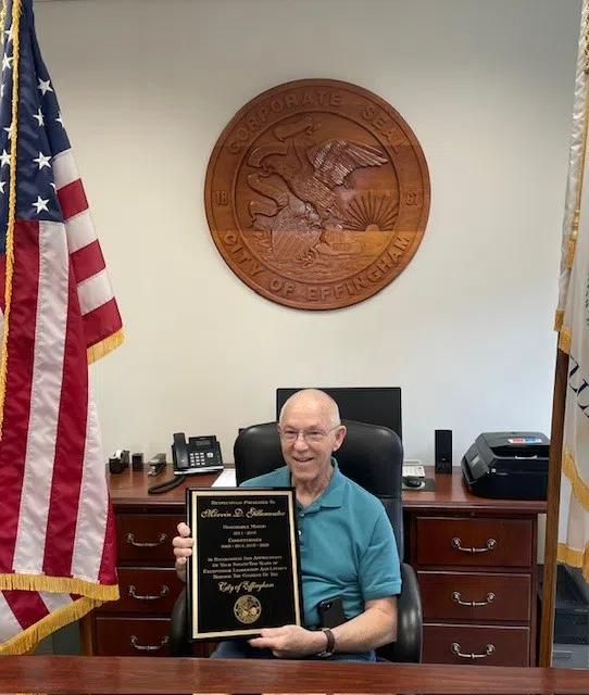 The City of Effingham honored long-time local leader Merv Gillenwater with a commemorative plaque. Mr. Gillenwater served as City Commissioner and Mayor during his twenty-two-year tenure with the City.