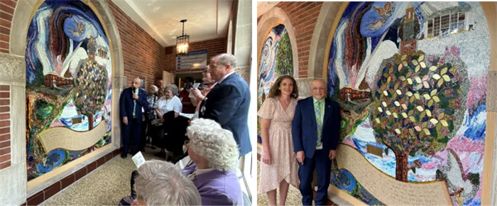 Effingham, IL-(Effingham Radio)- On April 30, in honor of the 150th Anniversary of HSHS St. Anthony’s Memorial Hospital serving the community, the hospital held an unveiling and blessing of the third and final mosaic artwork panel by Dr. Ruben Boyajian, artist and HSHS Medical Group general surgeon. The artwork is inspired by the well-known “Canticle of the Sun” prayer written by St. Francis of Assisi, the patron saint of the Hospital Sisters of St. Francis, some of whom were in attendance. The final panel concludes the artwork focusing on the St. Anthony’s Hospital 1949 fire, honoring the memory of the victims by incorporating their names in the artwork, and commemorates moving forward in faith afterwards to continue serving the community. Following remarks by HSHS St. Anthony’s Manager of Philanthropy Michael Wall and Chief Administrative Officer Anthony Powers, as well as Dr. Boyajian, the artwork was blessed by the Most Reverend Thomas John Paprocki, Bishop of the Diocese of Springfield, Illinois.
