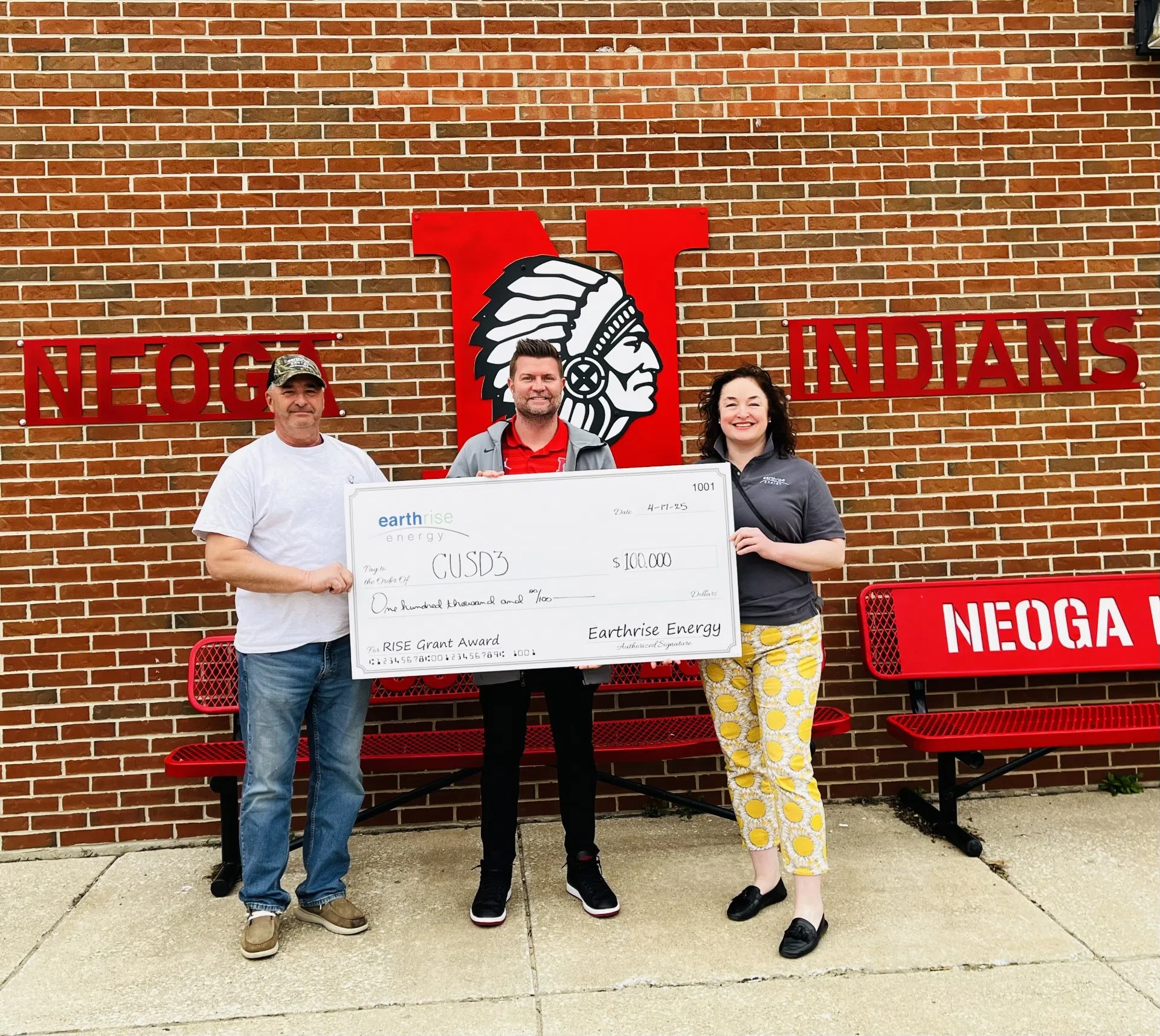 Effingham, IL-(Effingham Radio)- Earthrise Energy has awarded a $100,000 RISE Grant to Neoga Community Unit School District 3 as part of a broader tornado recovery effort in response to the devastating March 14, 2025 storm that struck the area.
