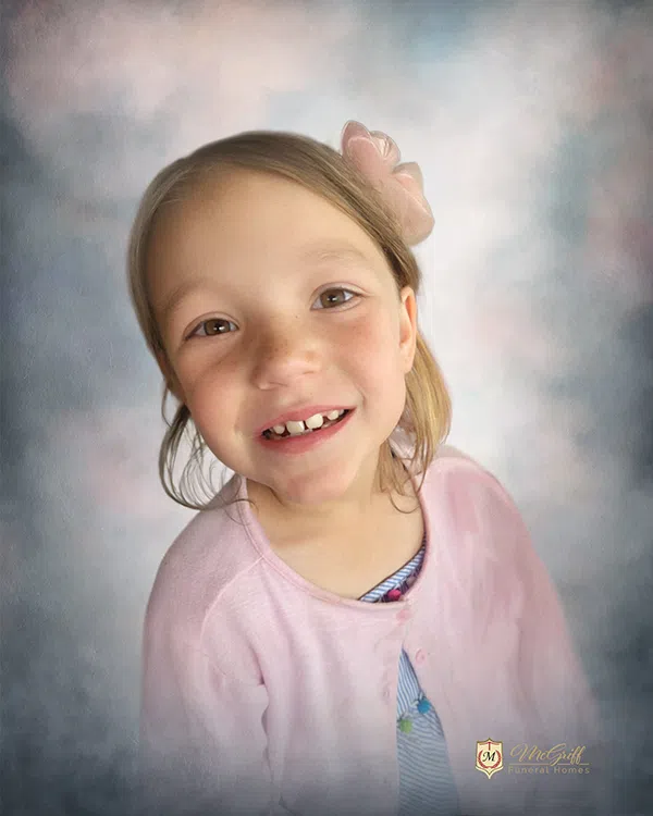 Grace was born on April 2, 2017 in Mount Vernon, Illinois the daughter of Jesse and Emilee (Walker) Fitzwater. Grace’s vibrant spirit touched everyone she knew. A spunky and joyful child, she filled the lives of her family and friends with laughter and love. Her passions were many, including playing the piano, attending church at the Kinmundy United Methodist Church, and participating in American Heritage Girls. However, her greatest joy was being the big sister to her brothers, Ridge and Otto, whom she adored. Her excitement for the arrival of a new sibling was palpable, a testament to the warmth and generosity of her heart. Grace possessed a remarkable capacity for love and kindness. She was a bright light in the lives of those who knew her, and her memory will forever be treasured. She is now reunited in heaven with her Grandma Marilyn, Granny Mulvany, and Aunt Jessica, where we imagine her happily skating on her rollerblades, radiating the same joy she brought to this world. Grace is survived by her parents: Jesse and Emilee Fitzwater of Kinmundy; brothers: Ridge and Otto Fitzwater; grandparents: Tony Walker of Iuka, Wes and Donna Fitzwater of Vandalia, Leon and Amy Thurman of Xenia, Jim and Rita Duncan of Salem; great-grandparents: Jerry and Penny Fitzwater of Salem, Vicki Donoho of Salem, Kay Sears of Flora; special aunts: Kacie (Grant) Lobek of Salem, Braxtin Walker of Austin, Texas, Alison (Jake) Kelly of Brownstown, Illinois; special uncles: Creed Bevalo (Tracy Lane) of Iuka, Rush (Leslie) Fitzwater of Rayville, Louisiana, Brennan (Lainey Detering) Fitzwater of New Athens, Illinois, Trevin Thurman of Bozeman, Montana; special cousins: Dalton, Kaedon, Lillian, Louis, Caydan, and Kelby; special pets: Copper and Amos; and many other cousins and friends. A visitation will be held on Friday, May 30, 2025, at the Kinmundy United Methodist Church in Kinmundy from 4:00 pm, until all friends that want to pay their respects pass through. Memorials may be made to Grace’s family to help assist with medical expenses. Following visitation cremation rites will be accorded and a private family service will be held at a later date at Evergreen Cemetery, Kinmundy. The McGriff Funeral Home in Kinmundy is honored to be entrusted with the family’s care and arrangements. |