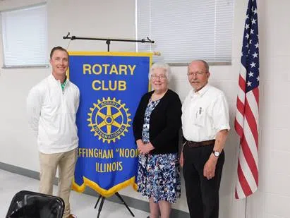 Noon Rotary also welcomed a new member. Jordan Peiser serves as pastor of Faith Lutheran Church in Shumway. He was inducted into the club by Noon Rotary President Andrew Koester.