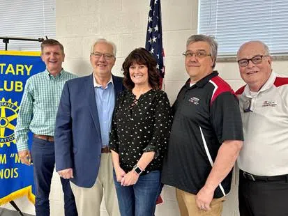 Effingham Noon Rotarians also learned about the history of Premier Broadcasting, the company started by Noon Rotarian Dave Ring that spawned Classic Hits 97.9 WXEF and KJ Country 102.3, WKJT. Dave shared the history of how he became involved in radio and started the stations. Tonya Siner and Greg Sapp, also members of Noon Rotary, talked about their roles at the stations as Vice-President of Operations and as Station Manager, respectively. George “Flex” Flexter also took part as Program Director for the stations and shared some of the technical end of the operation. Bob Schultz served as Rotary weekly program chairman. SHOWN: ROTARY WEEKLY