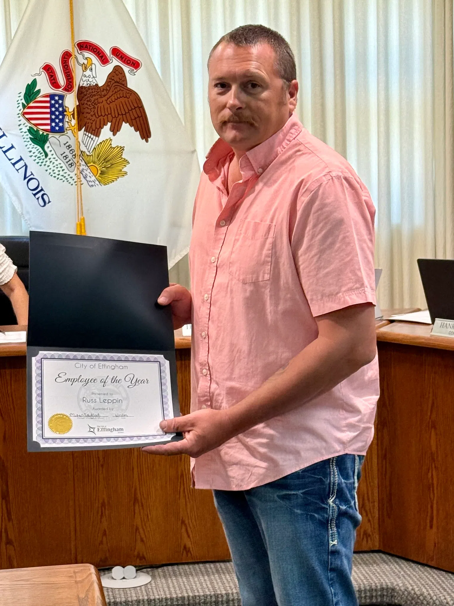 “The City of Effingham, as well as Effingham Public Works, is proud to recognize Russ Leppin, Equipment Operator, as our Employee of the Year through the City’s Employee Recognition Program.” (Photo courtesy of City of Effingham Facebook page)