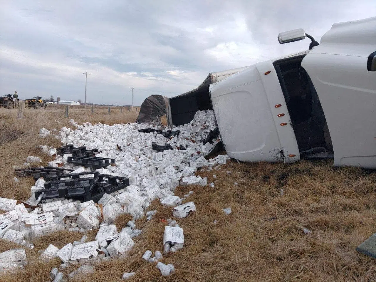 Upon arrival AC603 reported only partial outside lane blockage, no entrapment (driver self extricated) no hazardous cargo. Driver was transported by Rural Med EMS to St Anthony hospital. ISP Troop 9 on scene, along with IDOT, directed traffic at the crash site. Heartland Towing & Recovery uprighted the tractor trailer and recovered the spilled cargo.