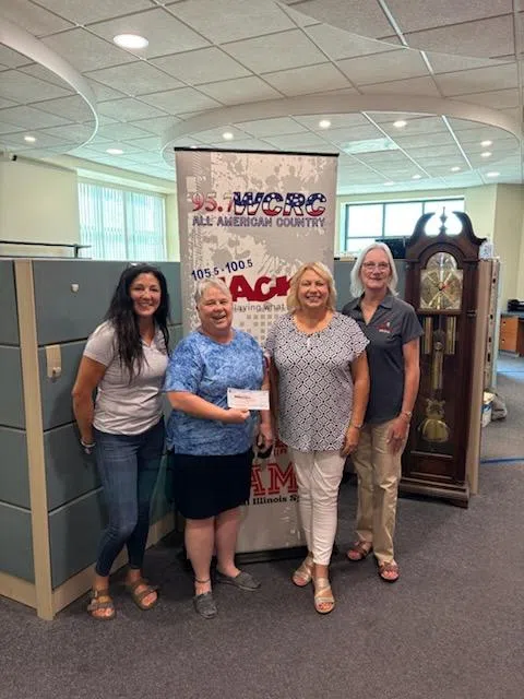 Effingham, IL-(Effingham Radio)- Karen Luchtefeld stopped by our station to pick up our yearly donation to Effingham County FISH with funds raised from the Effingham County Fair through our prize wheel. All together, we were able to raise $761 for FISH for school supplies.