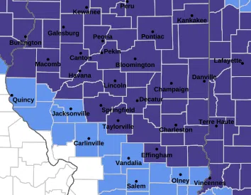 A frosty night is on track for central and southeast Illinois tonight, with lows expected to range from a few upper 20s close to the I-74 corridor to just above 32 from around Jacksonville to Lawrenceville. A Freeze Warning is in effect tonight for Effingham County and to the north/northeast. If you want to protect frost sensitive plants from the cold temperatures, cover them or bring them inside.