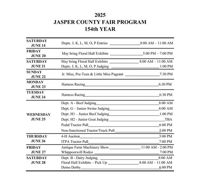 Don’t forget to follow Jasper County Fair on Facebook for event updates, highlights, and special announcements!